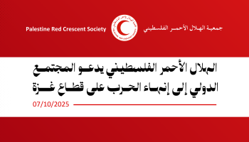 بعد مرور عامين: الهلال الأحمر الفلسطيني يدعـو المجتمـع الدولي إلى إنهـاء الحـرب على قطـاع غــزة