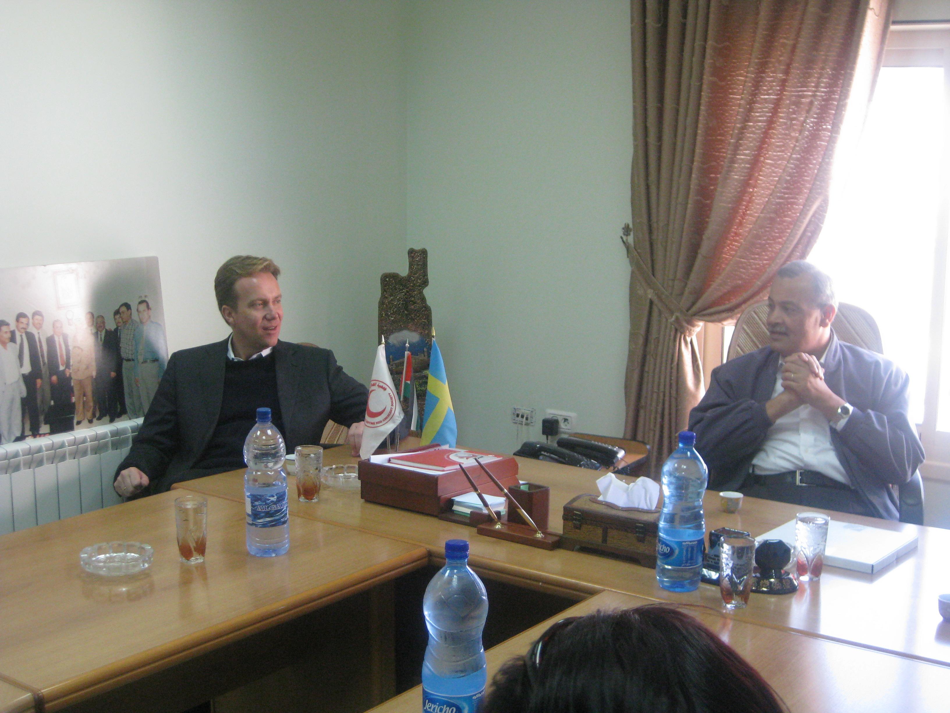 القدس-الخليل- قام بورغ بريندي، السكرتير العام للصليب الأحمر النرويجي، اليوم 2009.12.13 بزيارة تفقدية على مرافق جمعية الهلال الأحمر الفلسطيني في مدينتي القدس والخليل، رافقه خلالها د.يونس الخطيب، رئيس الجمعية.